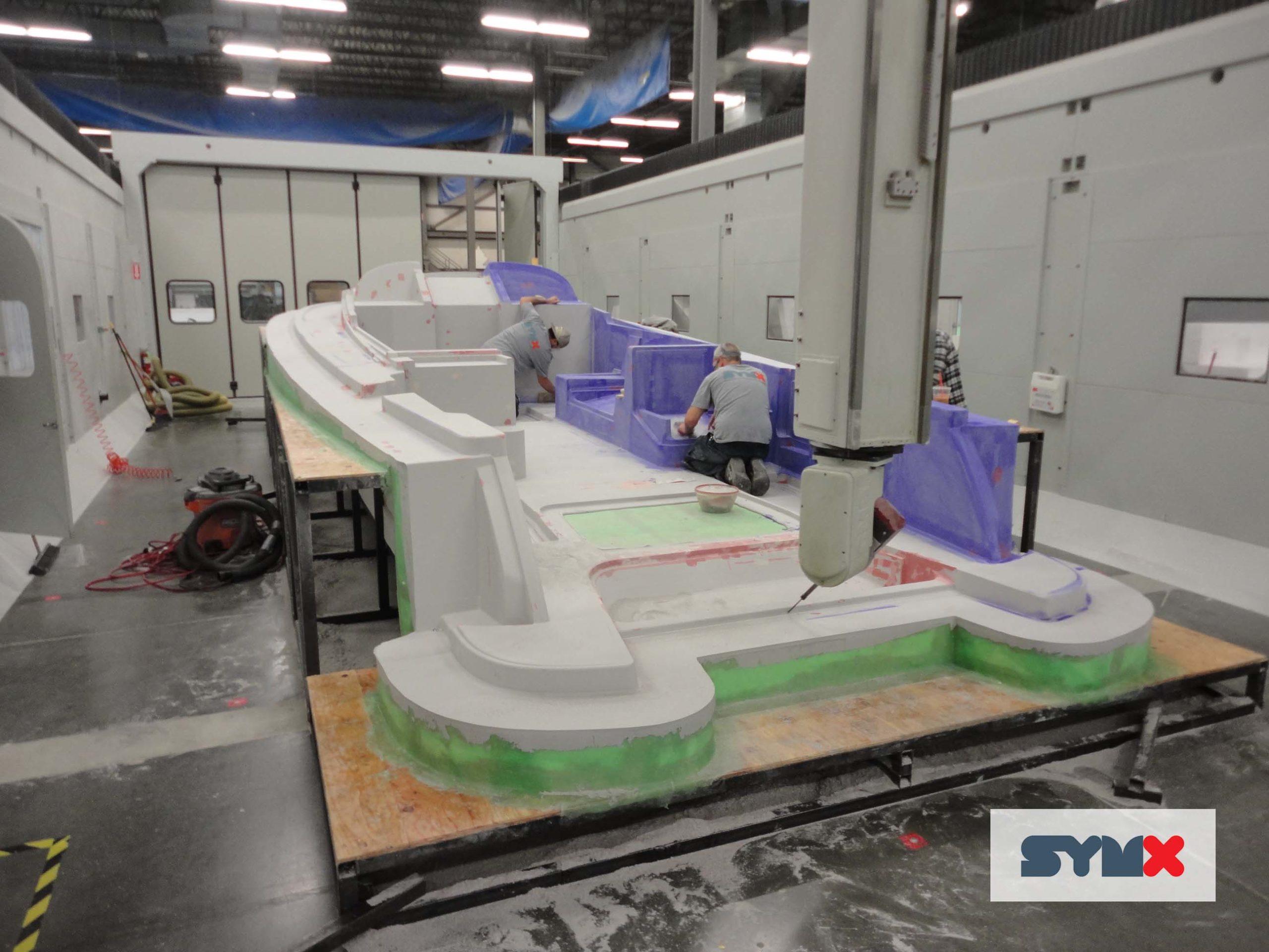 In June of 2016, Symmetrix starting crafting tooling for MJM Yachts. Designed by Zurn Yacht Design and to be built by Boston Boatworks, the MJM35z will be a “better performing outboard” built using a wet prepreg, post cure epoxy composite structure. What Symmetrix saw was a complex project requiring patterns and molds varying sizes and construction – from traditional Class A FRP tooling to Light RTM – calling for attention to post-cure temperatures, non-skid application, and careful project management. Early discussions centered around the tight schedule and material perimeters. Symmetrix’s agile team kept the line of communication open between Zurn, MJM, and Boston Boatworks, and over the course of the build, our sales, engineers, and production teams exchanged phone calls, emails, and even texts to make sure all parts were moving along as intended.